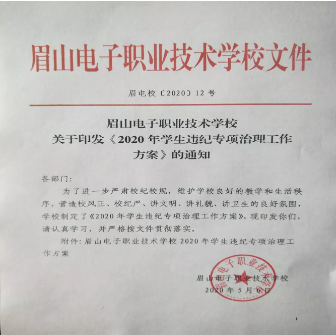 ? 專治辦聯(lián)合政教處,相繼出臺了《關(guān)于加強學(xué)校教育工作的指導(dǎo)意見》《眉山電子職業(yè)技術(shù)學(xué)校學(xué)生違紀(jì)專項整治方案》《關(guān)于成立眉山電子職業(yè)技術(shù)學(xué)校家長學(xué)校的通知》,從制度層面為推進專治工作提供了保障。