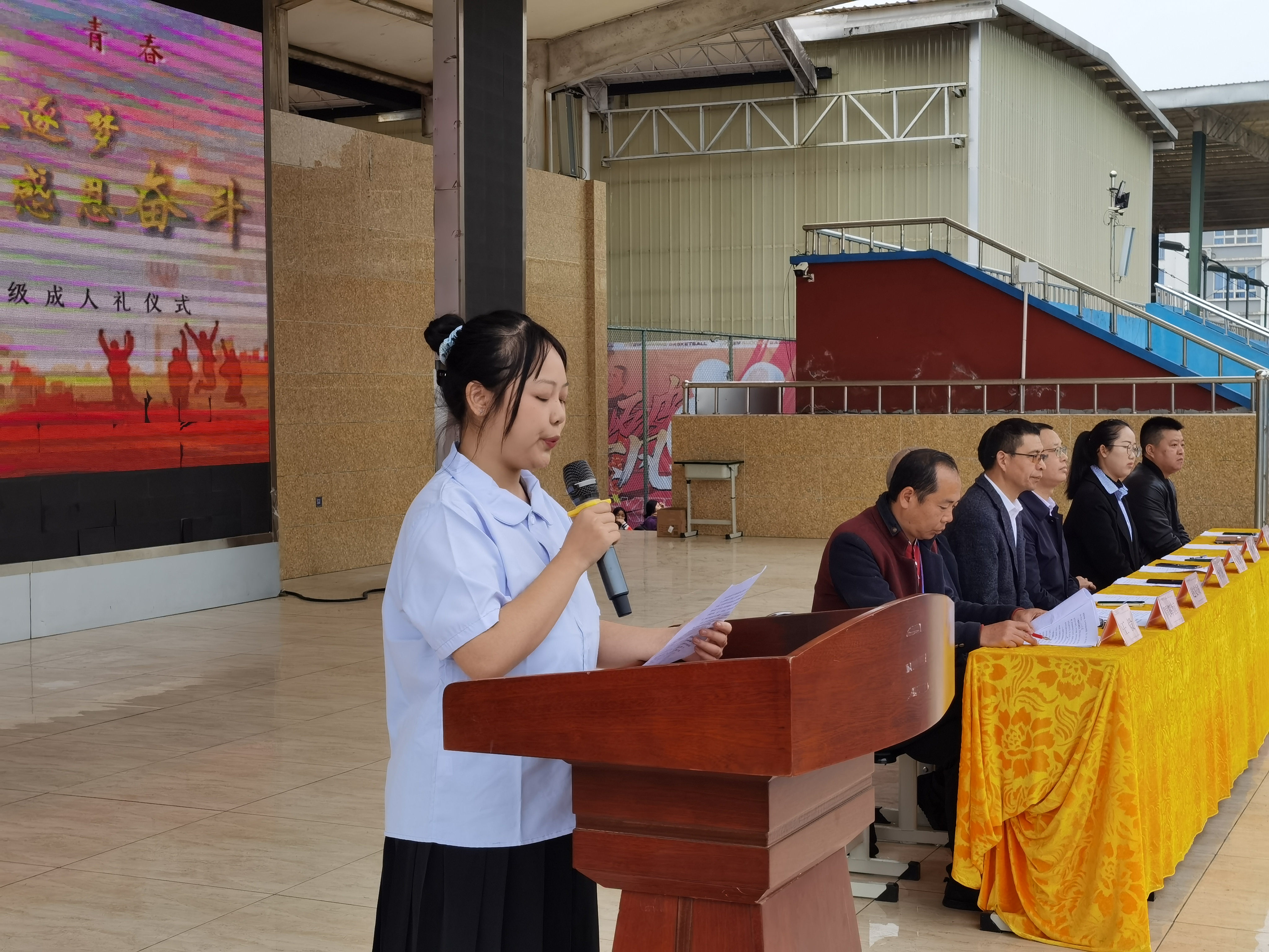 3月21日上午9點,眉山電子職業(yè)技術學校舉行了以“感恩 責任 奮斗 青春”為主題的成人禮活動。中國共產(chǎn)主義青年團洪雅縣委書記楊夢嬌、洪雅縣教育和體育局分管職業(yè)教育領導袁德強主任、全體師生及部分學生家長參加了此次活動。?